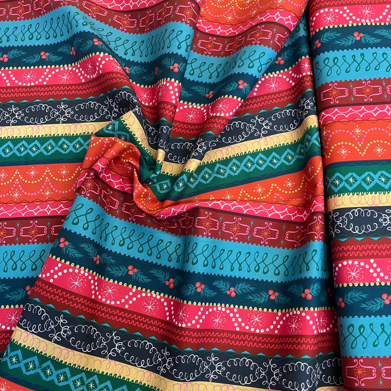 This week is a colourful and versatile Christmas fabric by Dashwood Studio from their Candy Cane collection. Christmas Festive Stripe could be used for all sorts of projects from napkins to bottle bags or why not a festive binding?