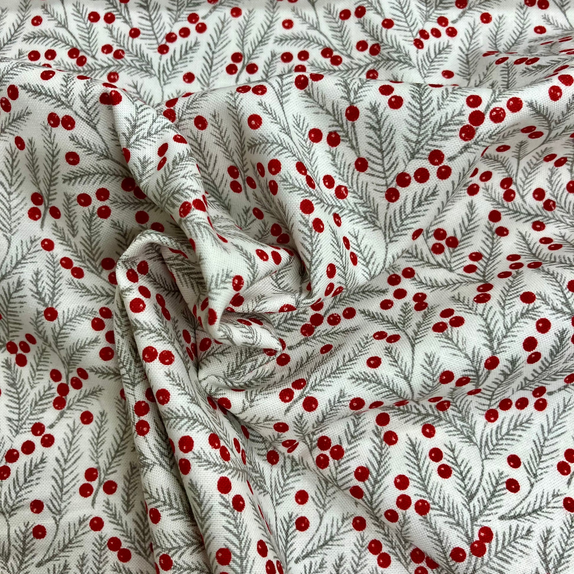 Tis the season for pretty Christmas fabric! Let the Berry and Pine collection transport you to the forest, bursting with sophisticated winter florals and bold luxurious hues. From poinsettias to pine, and berries to boughs, and polka dots for a striking Christmas mix.