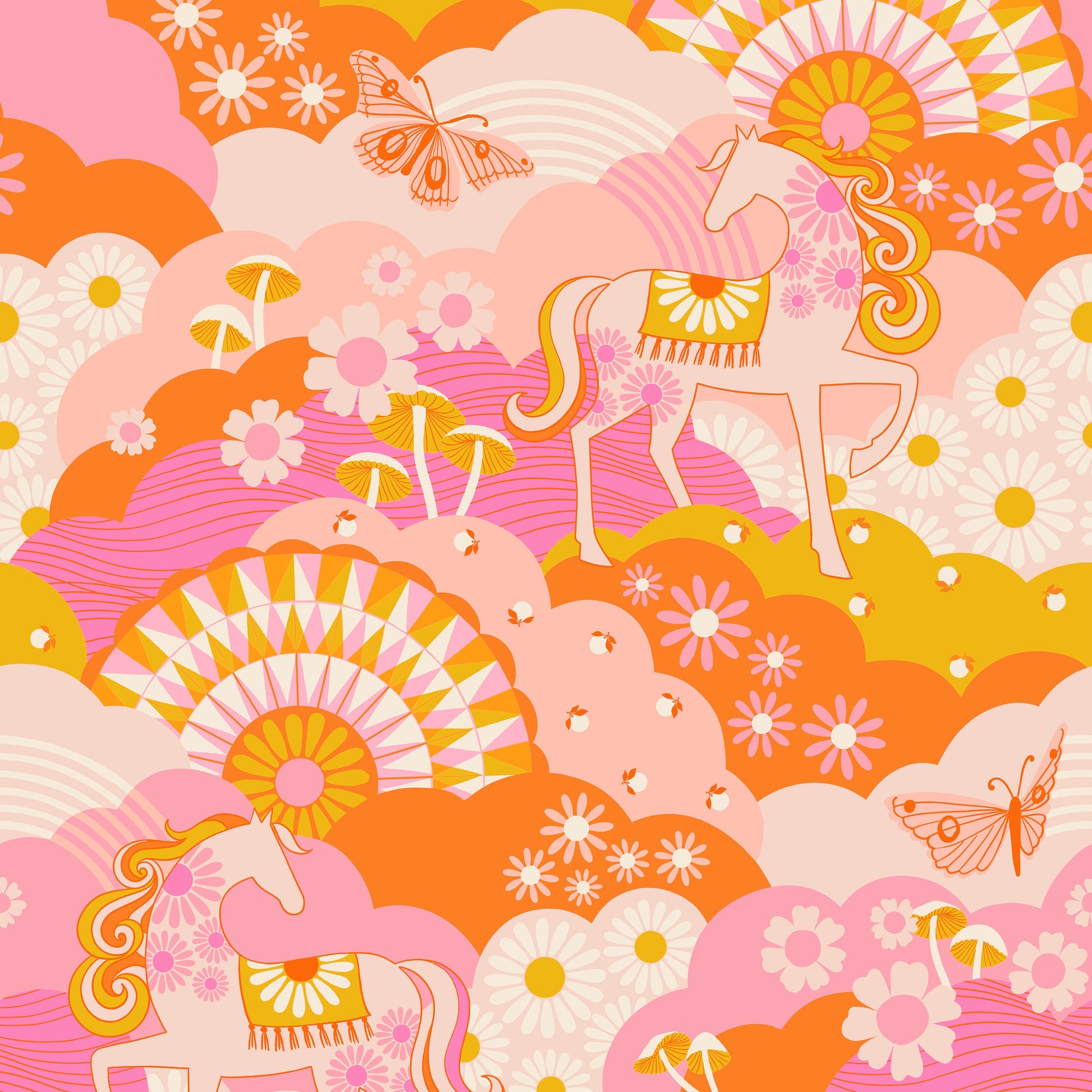 Discover vivid and psychedelic shades of pink, orange, and mustard (and a little navy thrown in to calm it down!) in Ruby Star Society's Carousel collection. It evokes a nostalgic 70's vibe and will inspire one-of-a-kind and eye-catching projects.
