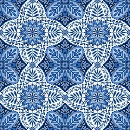 Fresh blue and white floral design by Mary Tanana for Quilting Treasures collection called Folklorica.