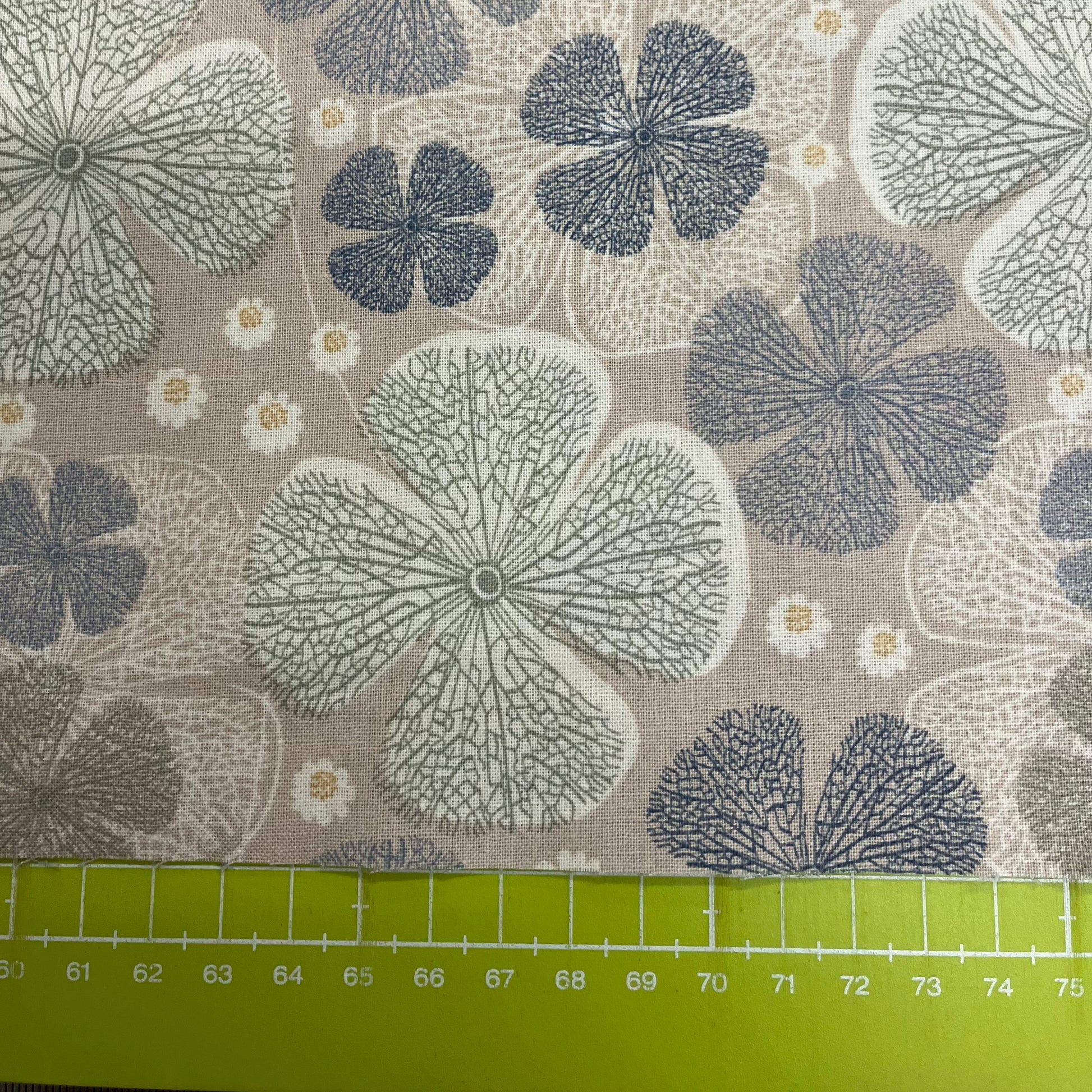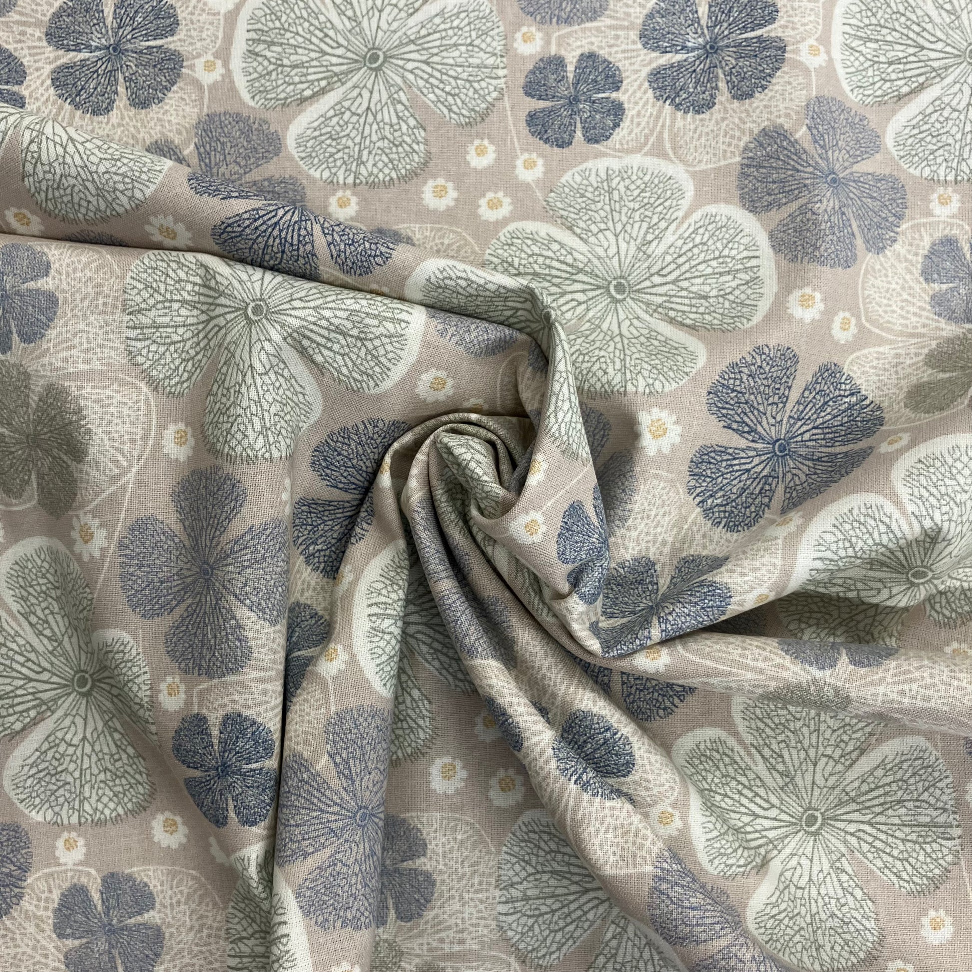 A beautiful print of skeleton petals in shades of sage, blue and beige. From Craft Cotton’s Natural Collection.