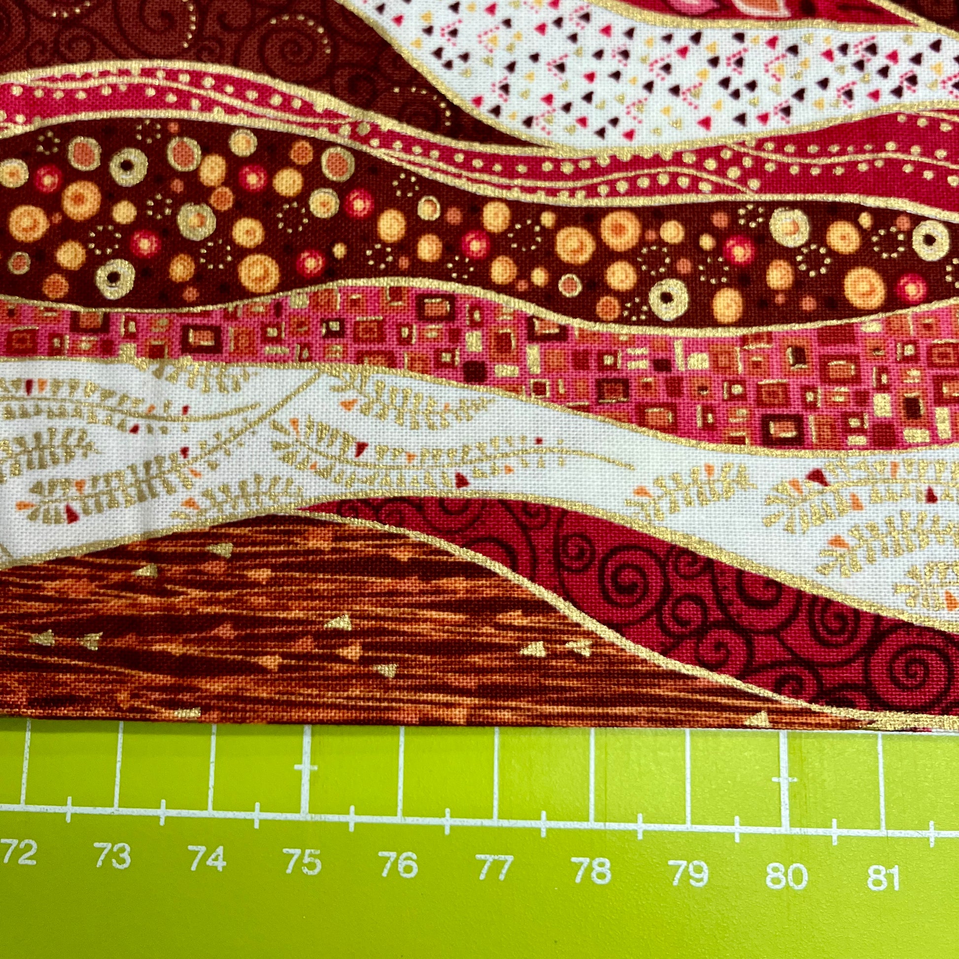 Golden by Makower is a beautiful collection of designs with echoes of Gustav Klimt in them. Metallic gold aplenty in all the designs, if you like a bit of bling you will love these.