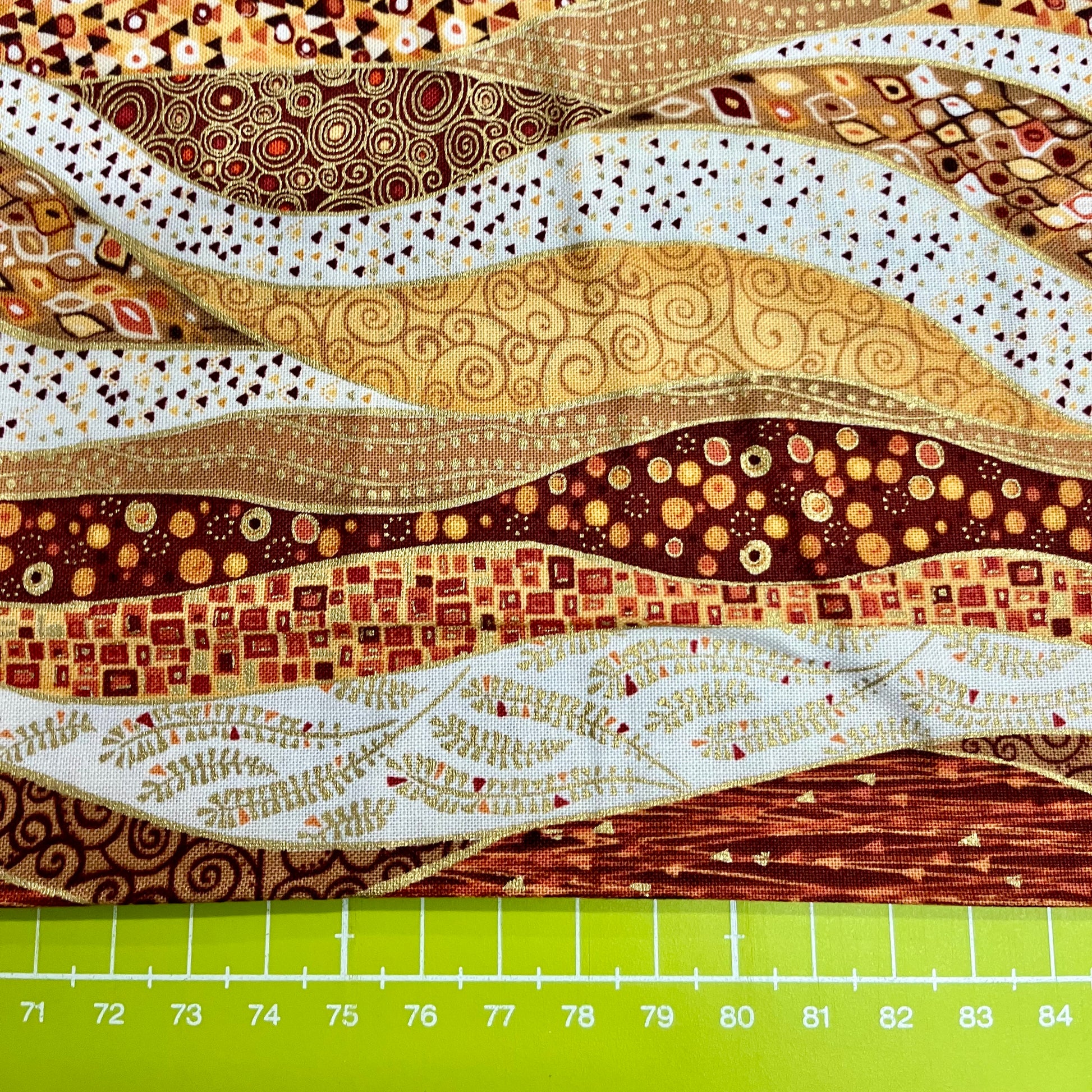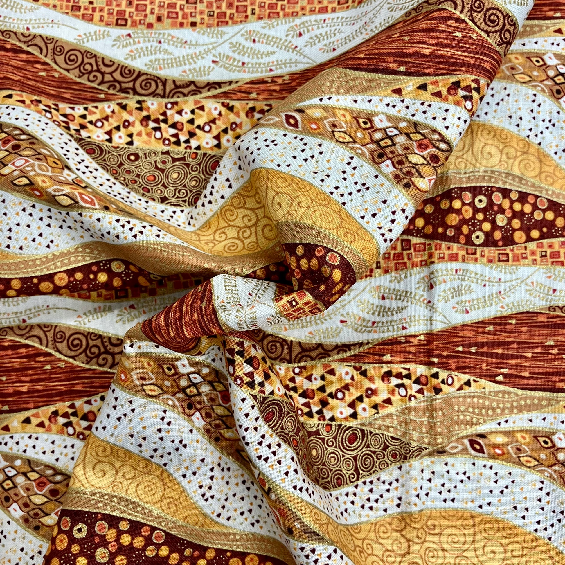Golden by Makower is a beautiful collection of designs with echoes of Gustav Klimt in them. Metallic gold aplenty in all the designs, if you like a bit of bling you will love these.