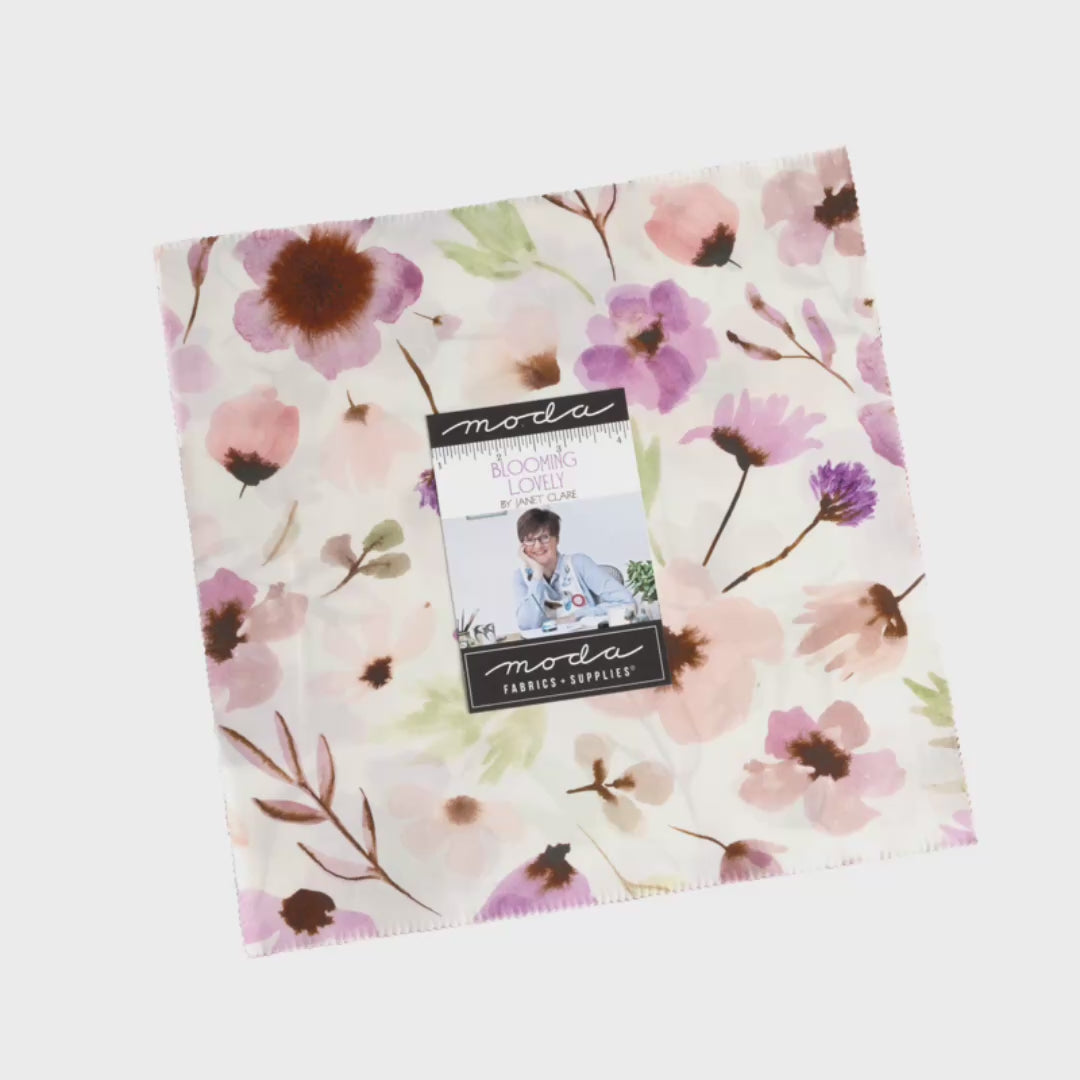 Blooming Lovely is a serene new collection designed by Janet Clare for Moda. Filled with delicate pinks and lilacs but with an added contrast of chocolate brown all in a water colour format.