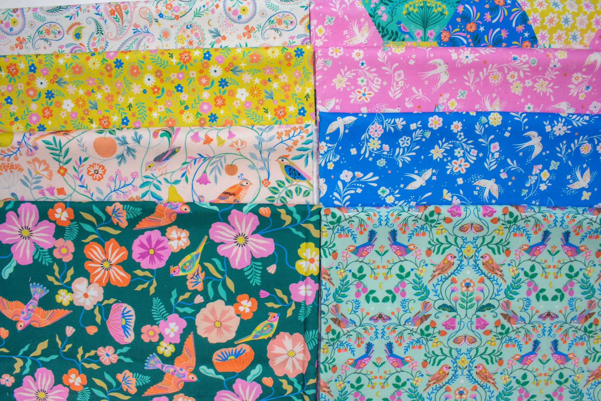Embrace nature’s melody with Songbird. Blooming florals, colourful birds, and a charming patchwork print bring the essence of spring to life!