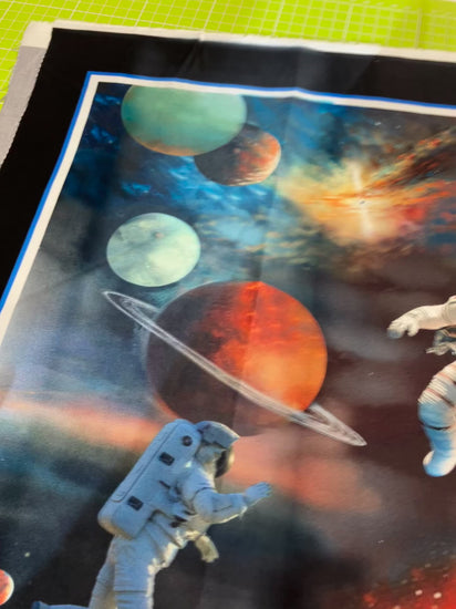 Let’s blast off with the Space Cadet collection by Francesco Moretti. Looking out the window in a space ship, you might see some breathtaking interstellar clouds filled with what looks like glowing lights. Forget about gravity and hop across the moon to collect samples for observation back down on Earth. The panel is out of this world featuring astronauts hard at work as planets orbit. Use the block panel and stripes to create a quilt for the space cadet in your life.