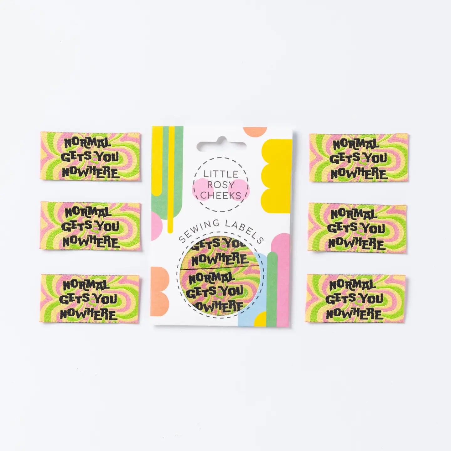 Stand out, don’t blend in – the Normal Gets You Nowhere label is a vibrant reminder to embrace your originality. With bold black lettering set against a swirling psychedelic backdrop of green, yellow and pink, this label brings serious attitude and energy to any handmade piece. Perfect for makers who dare to be different.
